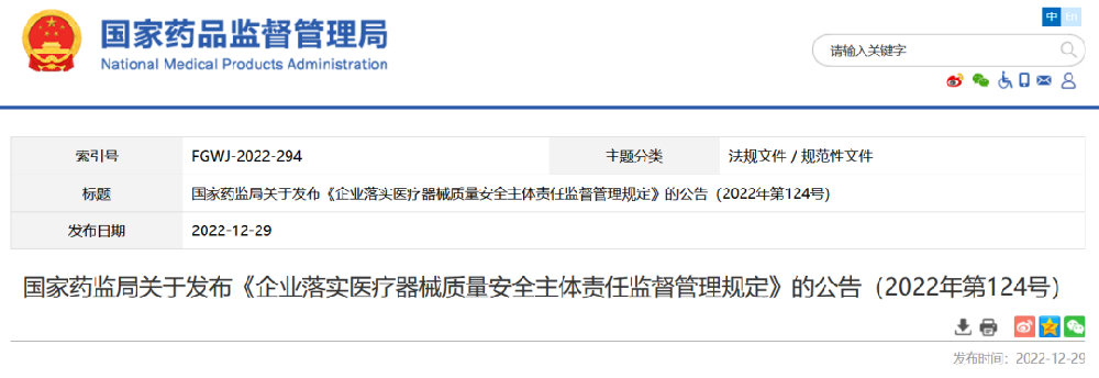 2023-02-102022年12月29日,國(guó)家藥品監(jiān)督管理局發(fā)布《企業(yè)落實(shí)醫(yī)療器械質(zhì)量安全主體責(zé)任...